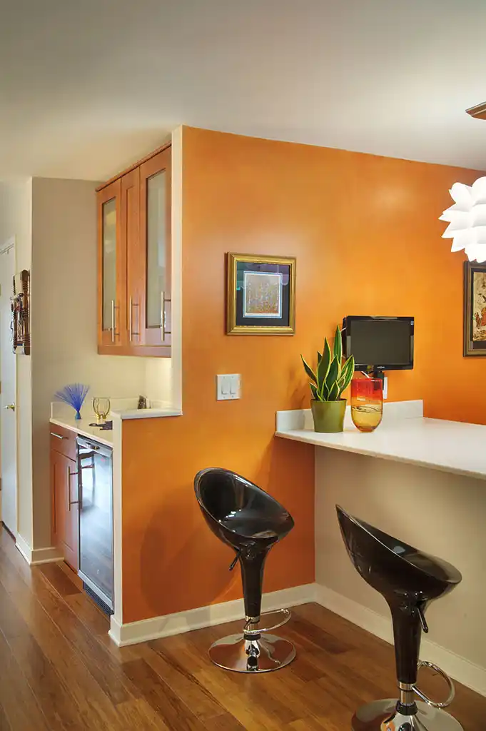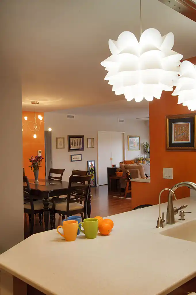 Accent walls, updated lighting fixtures, and thoughtful details add personality and visual interest while keeping the overall design clean and modern. The renovation demonstrates how a thoughtful interior redesign can greatly improve the functionality and character of a condominium home.